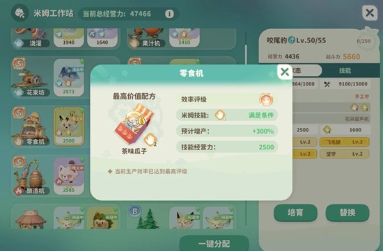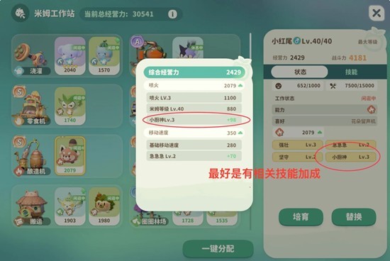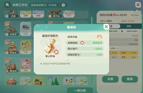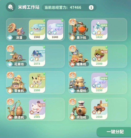 注意:核心其实是提升米姆的手工经营力,方法主要是:升级、升星,最好有相关的词条例如小厨神、手工姆等,有相关技能可以额外加分!越高级的产品需要越高的手工词条等级!如果词条等级不够就只能靠升星来弥补,最好选择父母带有手工词条的米姆去培育,有满足条件的米姆以后直接一键分配后再细节调整即可。