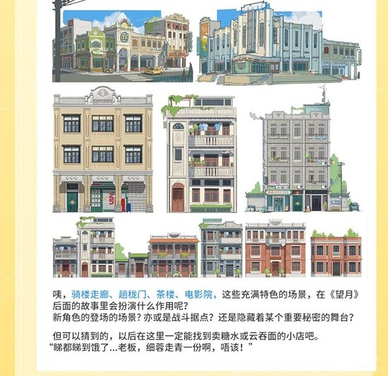 咦,骑楼走廊、趟栊门、茶楼、电影院,这些充满特色的场景,在《望月》后面的故事里会扮演什么作用呢?新角色的登场的场景?亦或是战斗据点?还是隐藏着某个重要秘密的舞台?