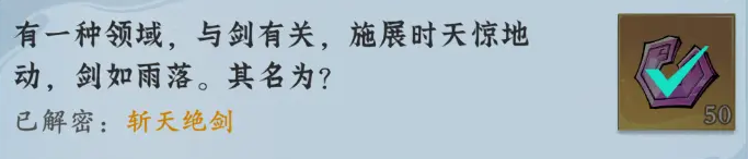8、有一种领域,与剑有关,施展时天惊地动,剑如雨落。其名为?斩天绝剑