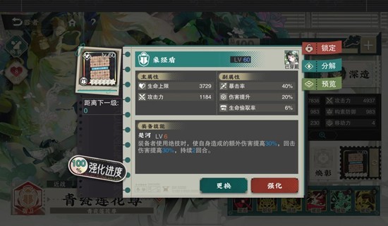 3.绝技:给自己挂莲花(攻击力+60%,回击伤害+60%)且自身回击后,给全体队友挂莲心(全伤+10%,可叠3层,持续2回合)(莲心是全图buff)