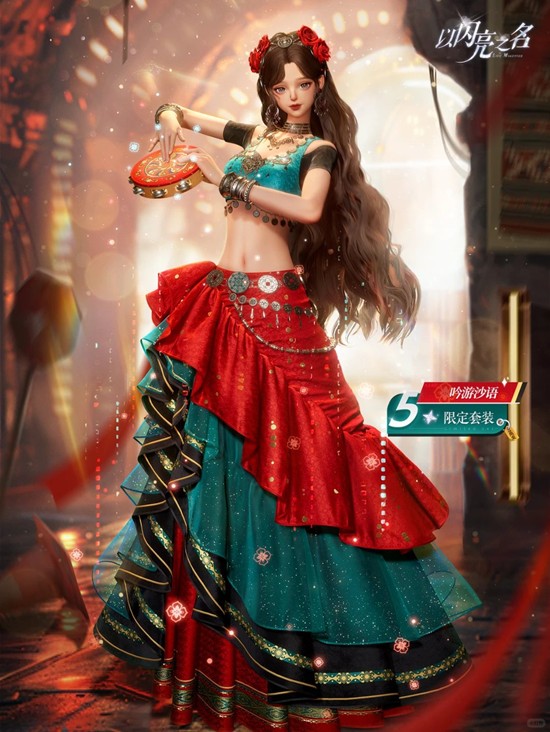 以闪亮之名复刻追光活动五星套装「吟游沙语」明日开启复刻~11月19日10:00–12月9日23:59星沙迷航限时开启!套装灵感源自吉普赛女郎,致敬经典歌剧《卡门》,她们如火一般热情奔放,也同繁盛的花朵一样绽开,一起来和小编看看吧~