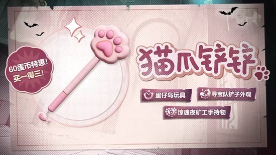 本周五将上线全新道具<猫爪铲铲>,60蛋币特惠。