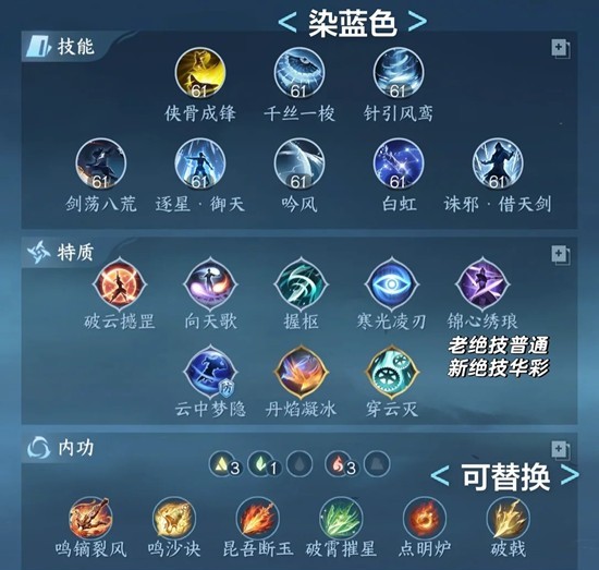 2.小特质,新绝技凤城用华彩;老绝技用普通凤城(记得把百家和绝技都染蓝色)