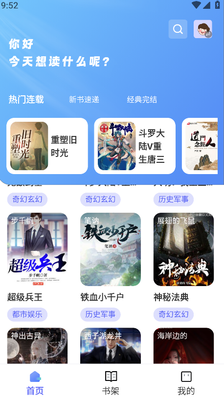 2、在小说详情界面二次点击封面,进入阅读主界面。
