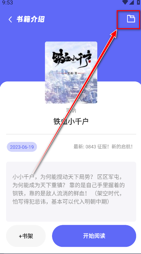 1、启动苍云阅读app后,在书库中选择目标小说并点击封面进入详情页。