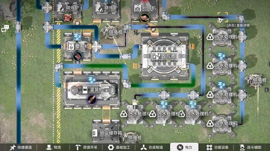 电力系统是支撑整个自动化产线运行的核心。核心协议周围存在一个黄色范围,所有生产设备必须位于此区域内才能正常供电。初期推荐使用基础地热发电机,但需注意不能将其部署在腐蚀区,否则会持续损耗耐久度,增加维护成本。总线取货口作为电力传输的关键节点,建议放置在核心协议出口前方,以提升电力输送效率,避免远端设备因供电不足而停机。