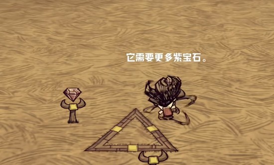 当玩家解锁暗影操控箱后,便可制作传送焦点。该道具的配方为4个噩梦燃料、4个活木和8个金块,材料成本较高,属于中后期才能稳定获取的装置。传送焦点并非一次性用品,放置后可长期使用,但每次激活都需要在四个顶点的支架上安装紫宝石。一旦完成一次传送操作,紫宝石便会碎裂,传送焦点也随之失效,必须重新装填紫宝石才能再次启用。因此,尽管其功能强大,但受限于紫宝石的消耗,更适合在资源充足、基地建设趋于完善的阶段投入使用。