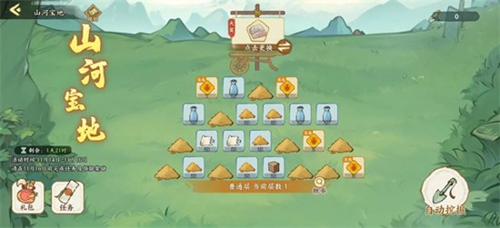 山河宝地在华夏绘世录中属于周期性限时活动,首次开启时间为开服第5日,之后每隔21天开放一次。活动期间玩家可通过完成每日任务获得铲子,全勤可领取10个铲子,任意金额充值还可额外领取10个,总计每日最多20个。每个铲子对应一次挖掘机会,普通挖掘可推进层数,而特殊层则出现在每5层一次的节点上,有机会获得天品文物碎片等奖励。玩家可在活动界面提前设置自己期望获得的普通层与特殊层大奖,一旦挖中目标奖励,即可直接跳入下一层,大幅提升进度效率。