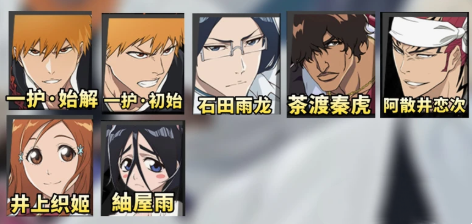 一护·始解、一护·初始、石田雨龙、茶渡秦虎、阿散井恋次、井上织姬、䌷屋雨