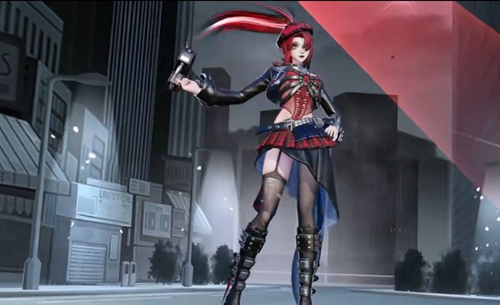 「逆潮朋克」皮肤的特效设计思路是展现骨女选择割舍不幸的过去,顺从内心成为一名自由模特的形象。她随心搭配时尚装扮,再拎起好友"蝎"为她设计的手提包,一切只凭喜好做事,自在随心。