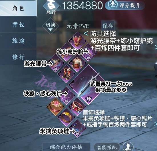 防具:游光腰带+练小窈护腕+百炼四件套即可
