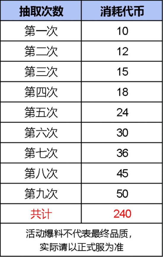 每次抽取消耗的至尊轮回币递增,抽完一个奖池共计需要240枚至尊轮回币,将两个奖池道具全部拿下共计需要480枚至尊轮回币。