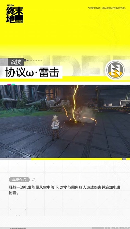 释放一道电磁能量从空中落下,对小范围内敌人造成伤害并施加电磁附着。