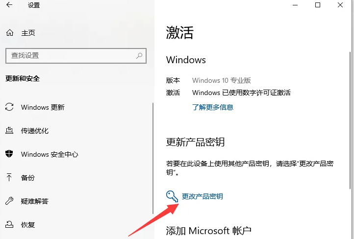 4、选择更改产品密钥。(已激活系统会显示该选项,未激活则显示输入产品密钥)