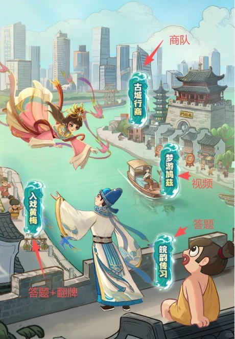 时光大爆炸与安徽文化进行了联动,在游戏主界面中点击皖韵商潮,然后在活动页面中点击入戏黄梅、古城行商、皖韵川习都可以进行答题。下文整理出了这些活动中答题的各个题目以及对应的答案!