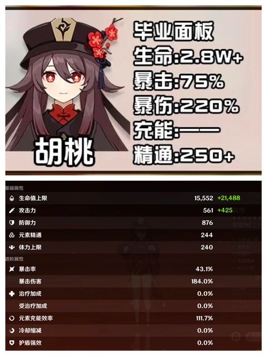 原神角色培养及解析-角色胡桃培养毕业面板参考