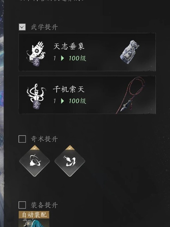 第四步:打开培养,右下角的一键提升,只勾选武学提升,直接一键升满级。