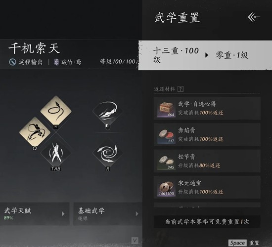 第六步:重置该满级心法,接着找一个没用过的武学,重复1、2、3、4、5步。