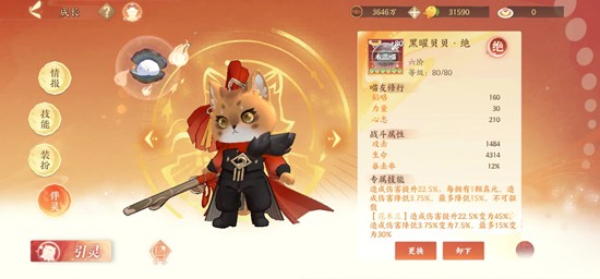 猫2:每回合触发“影击”后,攻击提升5%,可叠加3层,持续3回合。