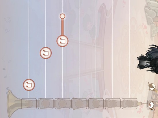 在滑动过程中,不要太在意线,看音符的圆圈,注意它快到右边的唢呐的时候,就立马划过去(这个比松手再点要快,且位置也比较准确)