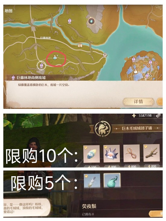 21.绒领毛团×5(店铺可以买10个,1/个/800噗灵)