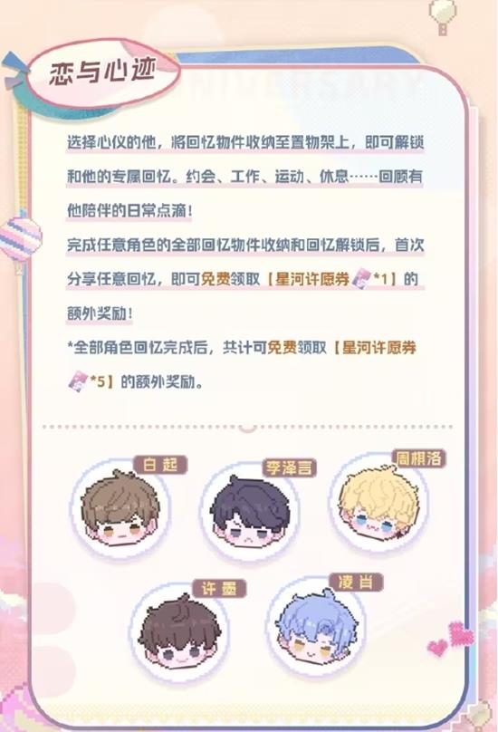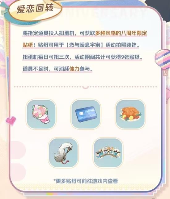 恋与制作人八周年预热正式定档!2月1日「爱恋回转」扭蛋机&「恋与心迹」回忆收纳双活动上线,限定贴纸、星河许愿券免费拿!