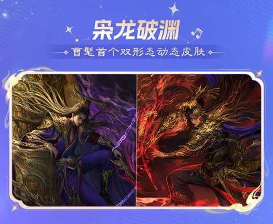 2.曹氏首套双形态动态皮肤战斗内满足条件即可切换“渊龙/霸凰”两形态,专属过场动画与台词同步更新,12月10日上架史诗皮肤箱,首周8折。