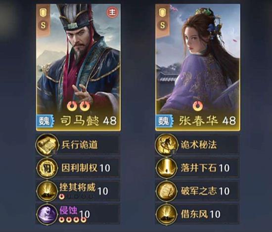 技能配置上,曹操依然可以沿用“刮骨疗毒”和“坚阵合一”来保证自身的生存与团队恢复。司马懿可以携带“挫其将威”与“太平道法”,前者能削弱敌方将领,后者则能提升其法术输出能力。张春华则推荐使用“借尸还魂”和“君心我心”,这两个技能能有效提升她的各项属性,并强化中毒效果的层数与伤害,使队伍的持续输出能力更为可观。