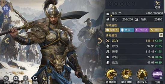 张辽也是一个值得推荐的武将。他在阵容中通常扮演突击流派的主将或辅助角色。与夏侯渊等武将搭配时,能形成强大的输出组合。张辽的机制有一定强度,但在实战中需要搭配特定的智谋兵法技能,才能最大化其能力,适合喜欢研究阵容搭配的玩家。