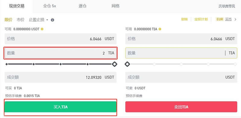 4.在现货交易区搜索TIA/USDT交易对