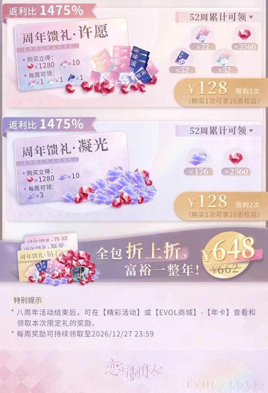 恋与制作人周年馈礼新品上架-八周年超值返利明日开启