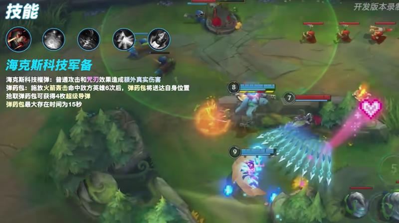 这一改动极大地增强了库奇的物理穿透能力,使得他在面对坦克英雄时威胁大增。被动中的弹药包机制也得到调整,在释放大招命中敌人后,库奇可以连续触发六次弹药包效果,捡起后能获得四枚强力的超级导弹,进一步强化了他的爆发能力。