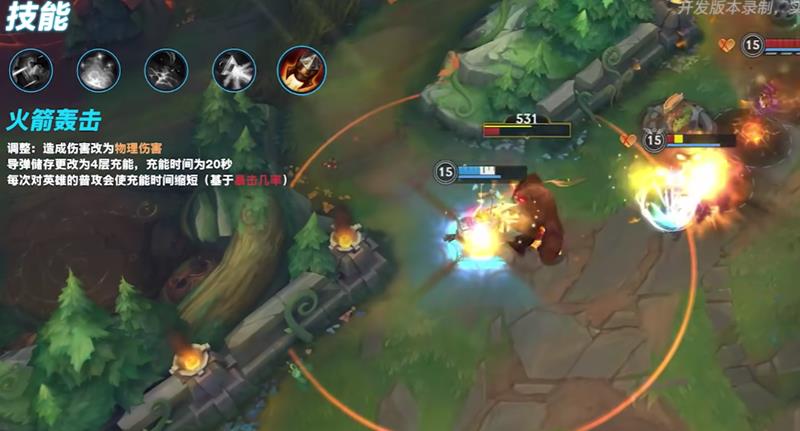 三技能“格林机枪”的改动同样显著,其伤害类型从魔法伤害转变为物理伤害。更重要的是,该技能新增了削减目标双抗的效果,这直接放大了库奇自身的物理穿透收益,使其对高护甲敌人的压制力成倍增长。大招“火箭轰击”的基础伤害虽未改变,但其充能时间缩短,并且暴击率的提升能显著增加导弹的爆发伤害,让库奇在远程Poke和收割时更具威慑力。