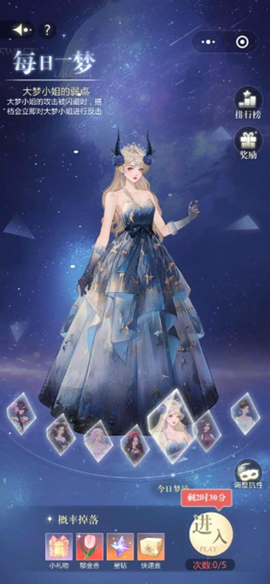 第二套思路侧重于生存与反击,利用高闪避来创造输出空间。核心套装是大梦小姐,它能提供可观的闪避率提升。这套打法的精髓在于堆砌闪避属性,高闪避不仅能保障玩家在无限梦境世界的长时间作战能力,还能在成功闪避时触发主位搭档的技能,从而打出不俗的连锁伤害。