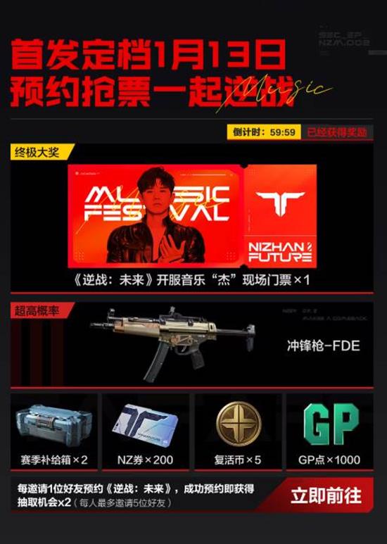 值得一提的是,在音乐狂欢现场,玩家还有机会参与互动环节,赢取包括《逆战:未来》开服音乐“杰”现场门票、冲锋枪-FDE等在内的超级大奖。每邀请一位好友预约游戏,成功预约后即获得额外的抽奖机会。