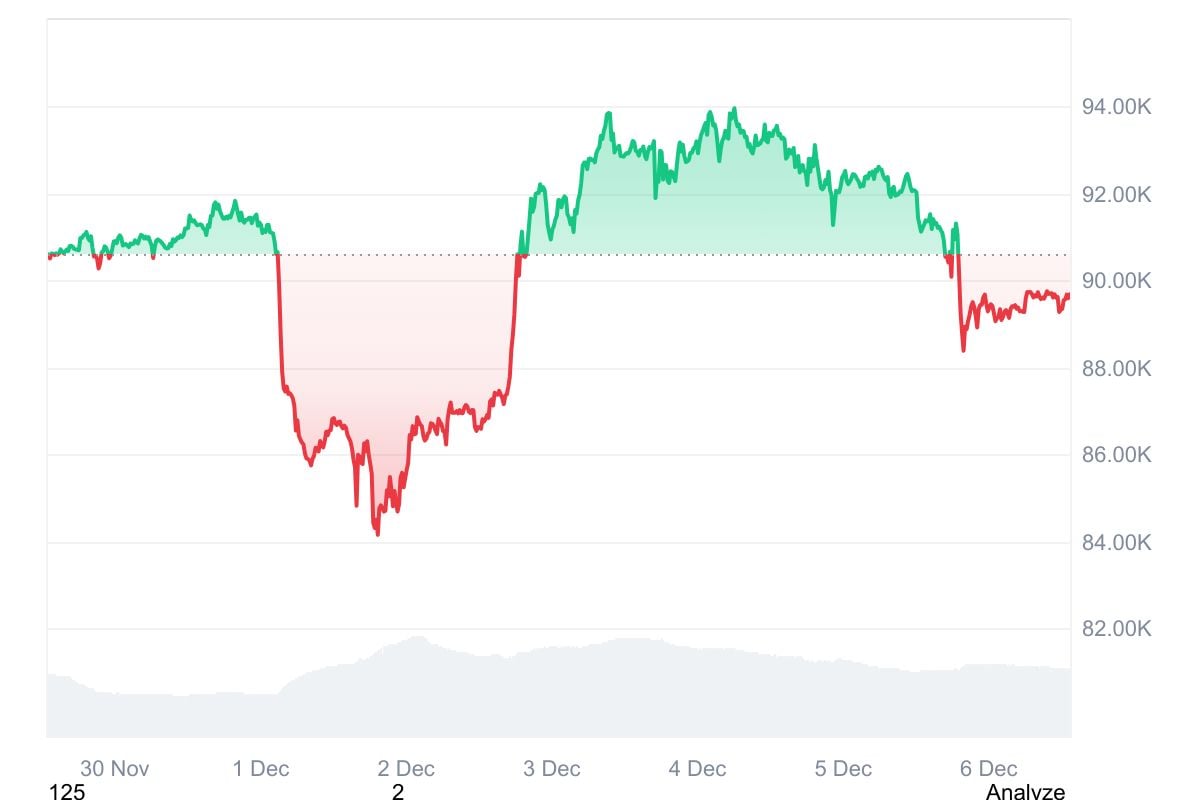 比特币12月初在8.5万美元附近起步,但随后强势反弹至9.4万美元区域。此举重燃交易者对季节性圣诞行情的期待。散户投资者一直将9.7万美元视作重要阻力位和潜在获利点,但市场始终未能触及该目标。