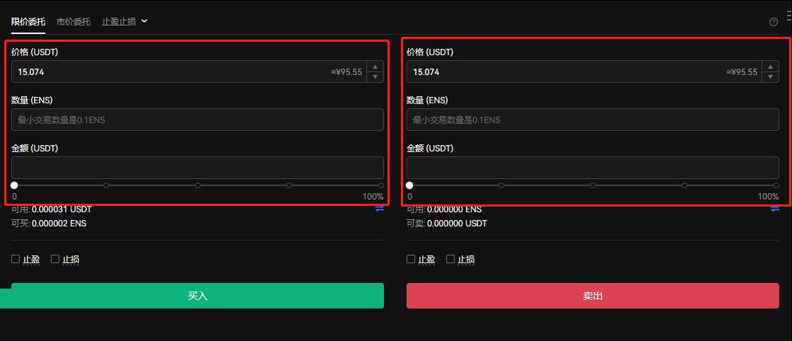 6.输入ENS购买数量(最低0.1ENS)并确认交易,卖出操作同理执行