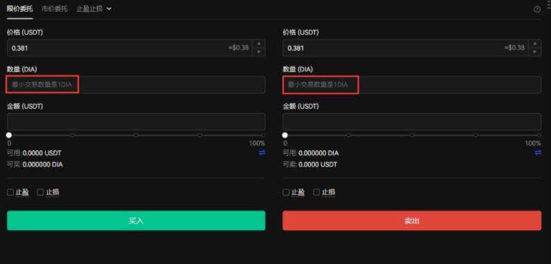 6.输入购买数量执行交易,需注意最小交易量为1DIA的规则要求