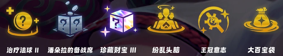 治疗法球II、潘朵拉的备战席、珍藏财宝III、纷乱头脑、王冠意志、大百宝袋