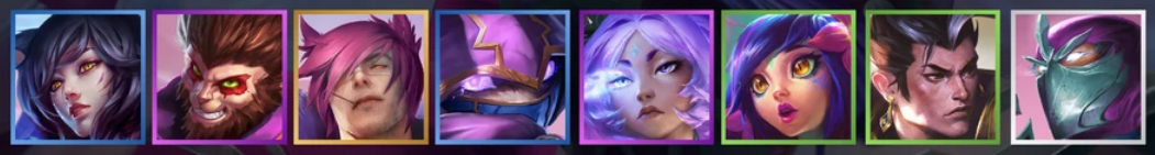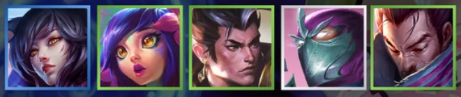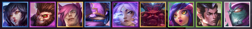 孙悟空+慎+妮蔻+瑟提+赵信+凯南+阿狸+芸阿娜+奥恩(9人口上)