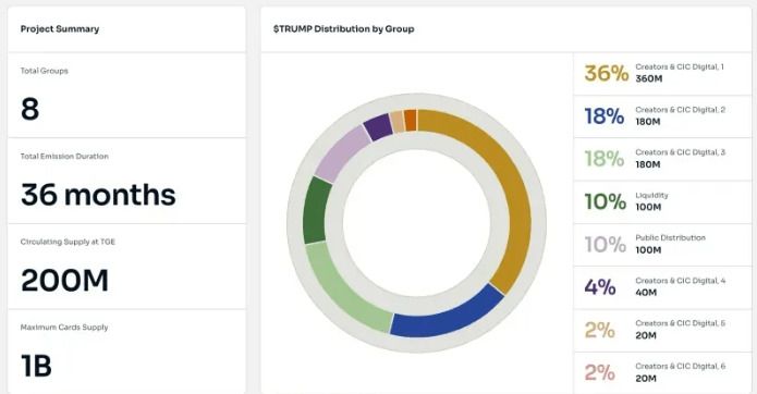 初始发行量2亿枚,计划三年内扩展至10亿枚。值得注意的是,80%代币由特朗普关联公司持有,其中CIC Digital公司资产估值已达307亿美元。
