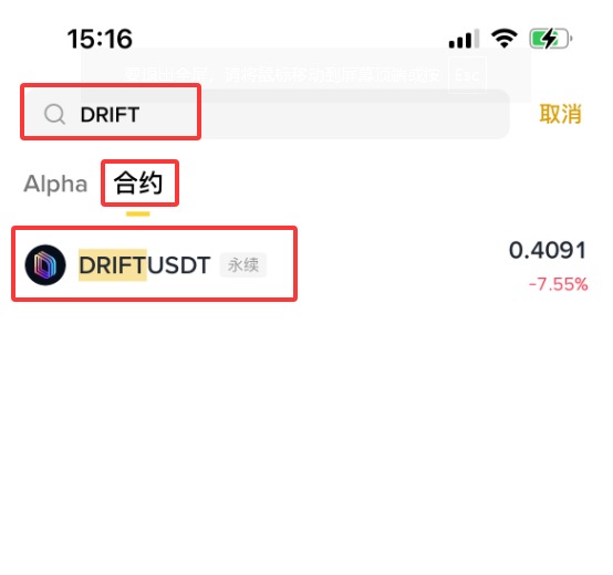 3. 输入【DRIFT】检索并选择【DRIFTUSDT】合约