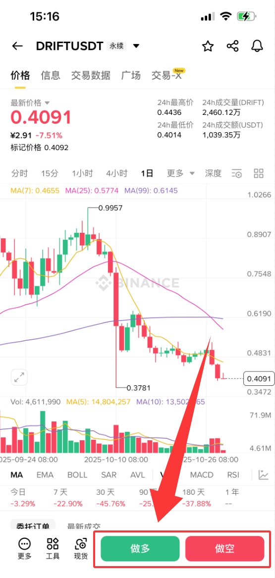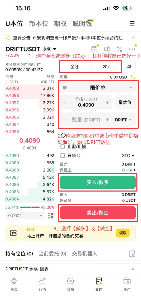 作为全球头部交易平台,币安已上线DRIFT永续合约交易对(DRIFT/USDT),支持1-50倍杠杆操作。相比现货交易,合约交易能通过杠杆放大收益空间,只需判断价格走势即可参与多空双向操作。