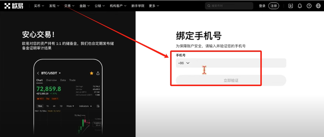 我们绑的时候是能够绑定中国大陆的手机号的,这个手机号只是为了平时收一些验证码用的。如果你的手机号或者是手机被运营商劫持,导致别人知道了,你注册交易所的手机号是什么,然后给你发了欺诈短信,你直接不理睬就行了。你只需要脑子里有一个概念,欧易交易所绑的手机号只是为了用来接收验证码的,剩下的所有信息欧易交易所都不会他通过手机号给你通知。
