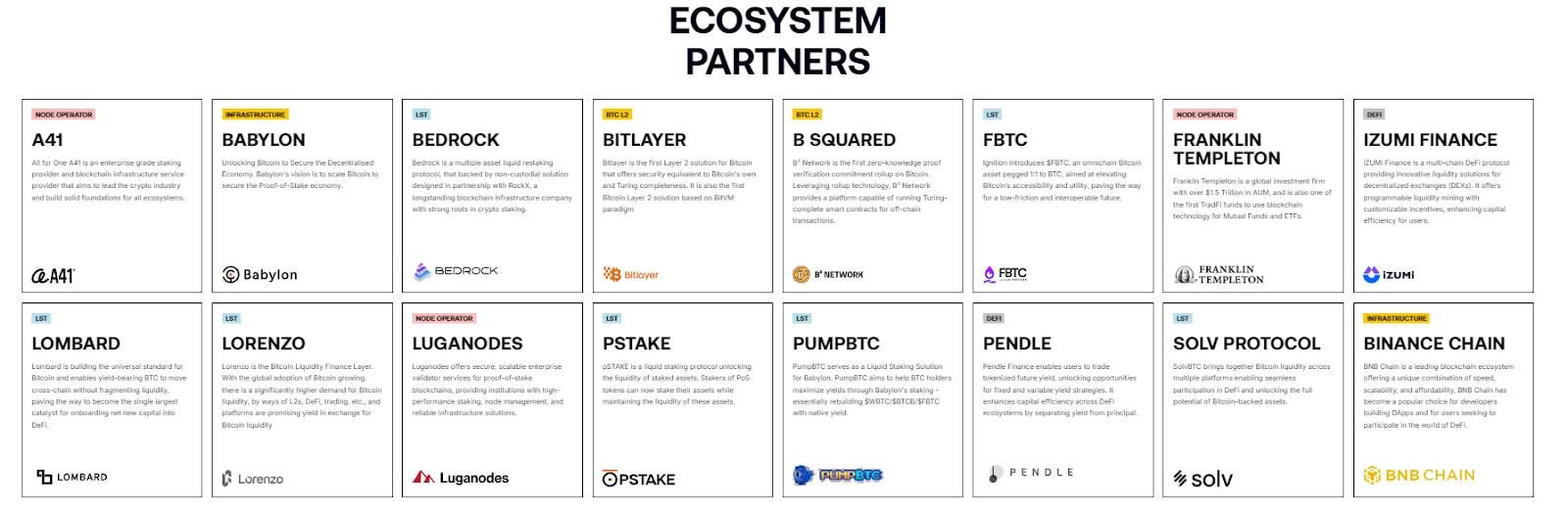 项目已与Babylon、Bedrock、Bitlayer等30余家协议建立合作,重点布局: