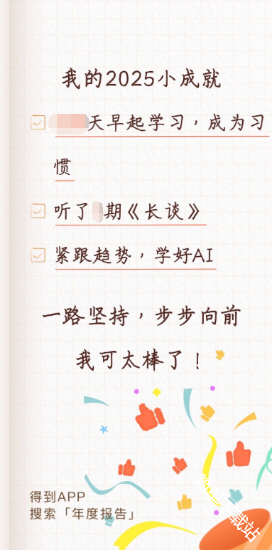 得到APP年度2025的最新总结报告已经开启啦,在软件中搜索年度报告,即可进入到总结界面中,点击开启回顾后就可以开始查看今年一整年的年度总结报告了。