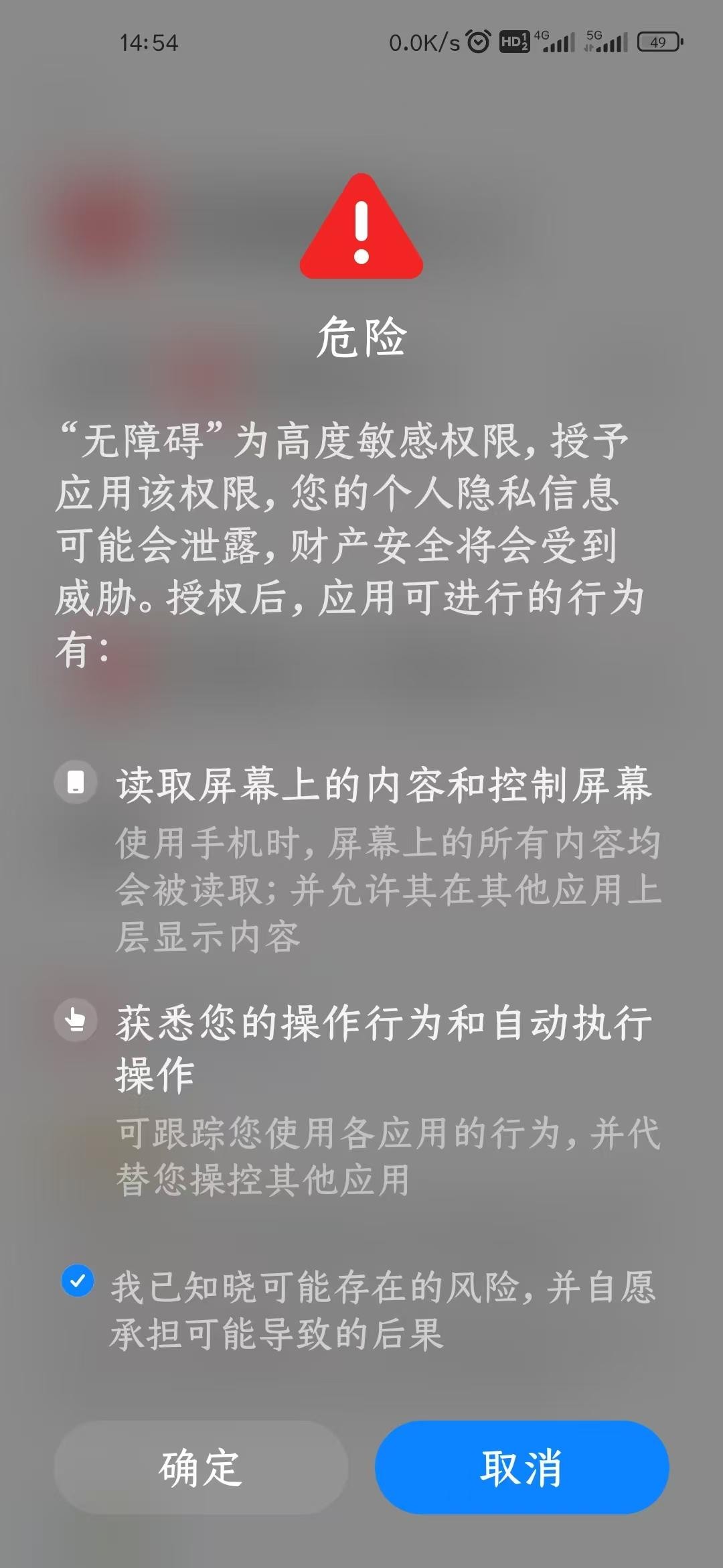 重要提醒:无障碍权限涉及隐私安全,请谨慎授权