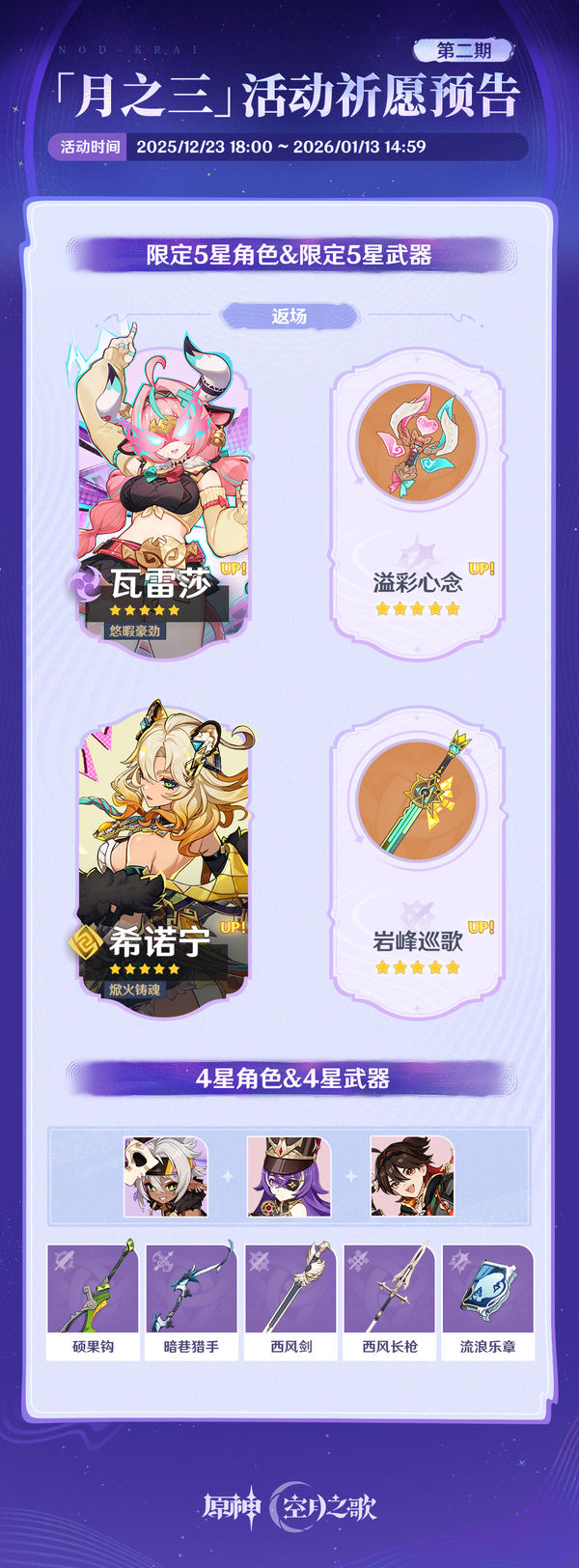 本期活动祈愿时间为2025/12/23 18:00 ~ 2026/01/13 14:59。