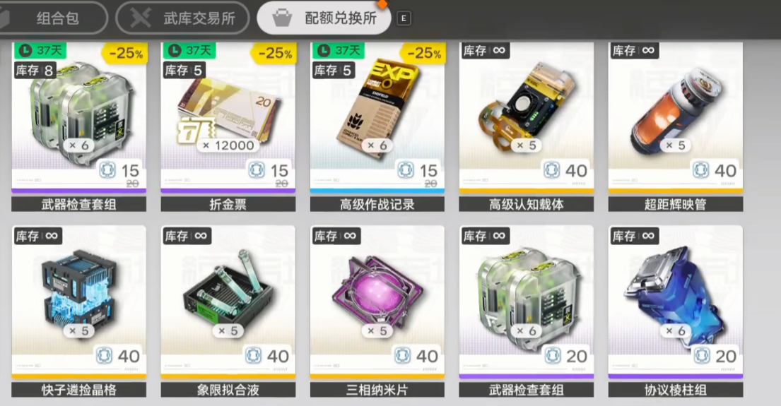 其次应锁定特许寻访凭证(俗称“小黄票”),该道具适用于常驻标准寻访池,稳定补充抽卡次数,属于长期刚需资源。其余选项则需按个人养成缺口灵活决策:若急需精英化材料、技能升级素材或信赖培养资源,可优先兑换对应养成类物资;若武器图鉴进度滞后,则转向武器套组类商品。