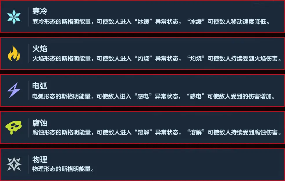 腐蚀形态的斯格明能量,可使敌人进入溶解异常状态,溶解可使敌人持续受到腐蚀伤害。